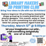 Learn beginner 3D Printing concepts like grouping and combining shapes to make something useful and fun! This month, we’ll have a “free for all” – you get to make something fun, unique and original! This club is for kids ages 9 and up!